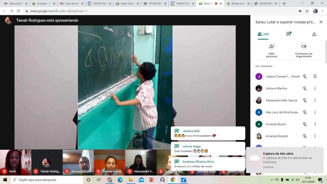 O assunto inclusão social precisa de evidência e, para ajudar os alunos do 5° e 6° semestre de Pedagogia a entenderem mais do assunto, a professora Juliana Chaves propôs um trabalho dinâmico, um sarau on-line batizado de: “Lutar e superar nossas próprias deficiências, da integração à inclusão”. O evento ocorreu no dia 13 de novembro.